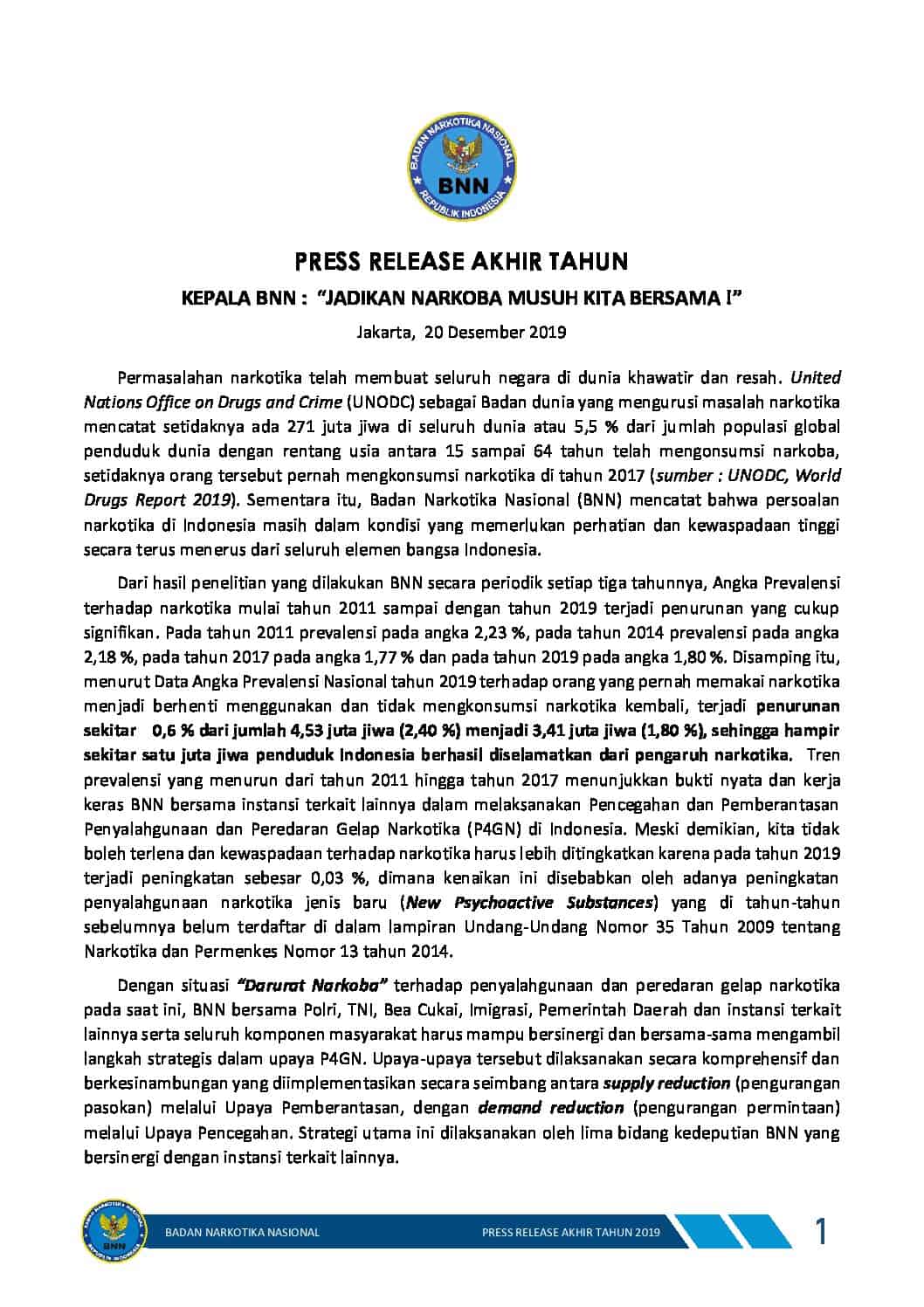 Badan Narkotika Nasional, 2019. Press Release Akhir Tahun, https://bnn.go.id/konten/unggahan/2019/12/DRAFT-LAMPIRAN-PRESS-RELEASE-AKHIR-TAHUN-2019-1-pdf.